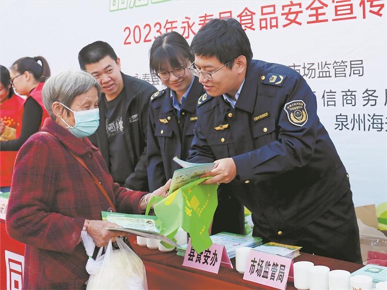 日前,永春县食安办联合多个部门,开展以“尚俭崇信尽责 同心共护食品安全”为主题的2023年永春食品安全宣传月活动,通过主题宣传、咨询服务和走基层、进企业等,倡导社会各界积极参与食品安全治理,在活动中提高群众对创建国家食品安全的知晓率和满意度,营造全县食品安全社会共治的良好氛围。