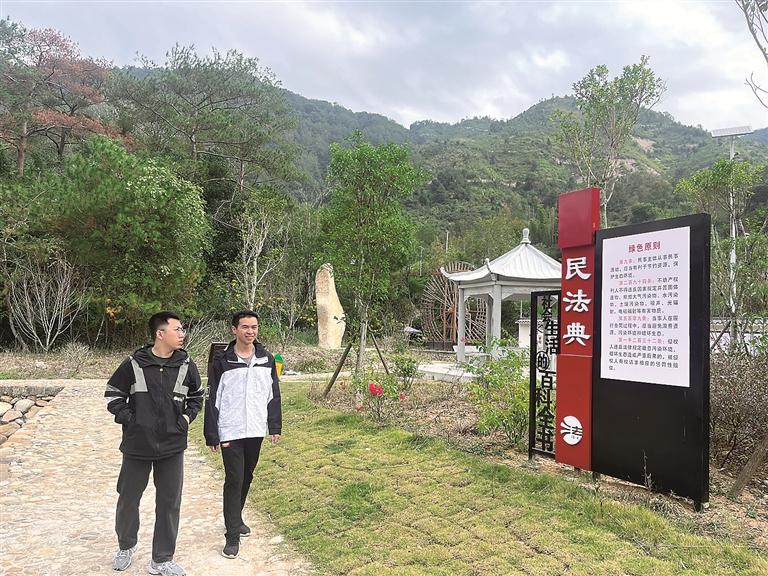 近日,德化县龙门滩镇碧坑村法治文化园顺利落成。该文化园位于碧坑村“网红打卡点”粹美湖公园内,在规划设计上遵循“以法为魂、以园为体、因地制宜、自然朴实”的理念,把法治文化思想理念与现有的公园环境绿化、设施等相融合,赋予公园新的法治文化生命力。