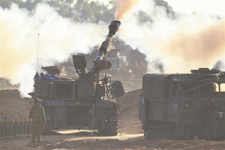在加沙地带和以色列边境地区以色列一侧,以军向加沙地带开炮。(新华)