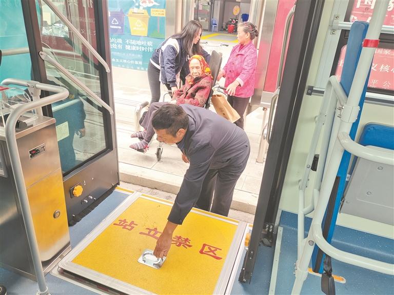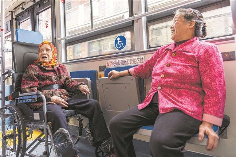 一路上,阿婆开心地看着窗外的风景。陈阿姨说,平时她都是推着轮椅陪着老人在家附近走一走,想要到远一点的地方很麻烦,坐车时不仅要把人抱上车,轮椅也要扛上车。当得知公交车可以直接推轮椅上车时,她和老人就商量着来体验一番。“有了那块翻板,推轮椅上下车就很轻松了,以后想去远一点的地方方便多了。现在社会越来越进步,公共设施对我们老年人也越来越友好了。”