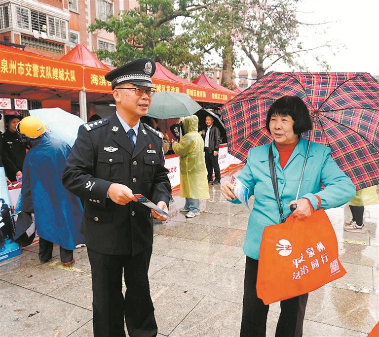此前一天,鲤城公安分局海滨派出所民警在辖区开展“传承宪法精神”“防毒拒毒、大声说‘不’”等普法宣传,将宪法宣传和禁毒宣传相结合。活动中,民警通过设立咨询台、开设讲座等形式,结合生动鲜活案例以案释法,向群众普及了宪法、禁毒防艾、防范电信诈骗等知识,并对群众提出的问题一一解答。