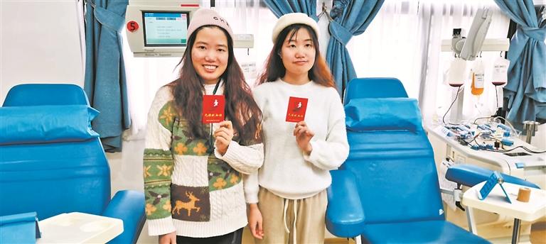 妇女顶起半边天,志愿者队伍里有好多女同志。12月3日来血站捐献血小板的就有一对双胞胎姐妹,姐姐吴方方,妹妹吴圆圆。姐妹俩2016年考上大学,当年18周岁。在这人生的重要时刻,姐妹俩参加无偿献血,庆祝考上大学,同时作为自己的成年纪念。之后,姐妹俩每半年继续献血,认为这是履行大学生的社会责任。