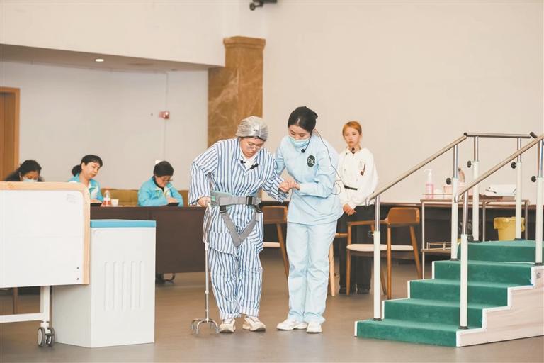 “这次比赛我最大的感受是真实化,大赛将种种最贴近真实养老的场景搬入赛场,而不是‘汇报演出’。”刘舒景告诉记者,决赛中的一个环节,需要帮助老人进行拐杖行走训练,这位老人曾经在家里行走摔倒过,训练过程中出现了畏难情绪,这时候应该及时给予老人心理辅导和鼓励,陪伴老人战胜困难。这让她在以后的工作中会更加注重于人文关怀,多点爱心和耐心。