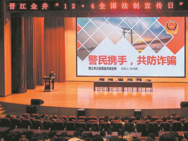 “同学们要勤工俭学是好事,但要注意防骗识骗,网络刷单和出租出借出售银行卡都是违法的事情,千万不要去尝试……”日前,由晋江金井镇政府、福州大学晋江校区、晋江市公安局法制大队、金井派出所共同举办的“12·4全国法制宣传日”普法活动走进福大晋江校区,为大学生们送上“学拒毒”“防诈骗”“反校园暴力”三堂“平安好课”,提升他们的自我保护能力,助力乐享平安校园生活。