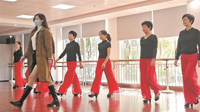 “抬头、挺胸、转身,注意表情管理……”每周三上午10点,在晋江市老年大学的形体课教室里,伴随着音乐的节拍,1米76身高的庄颖滢都会带领着十几名老年学员来回走着台步,尽管人数不多,她们却走出了“千军万马”的气势。