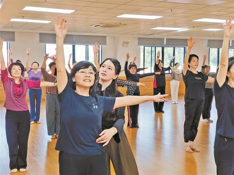 “她们太卷了。”说起自己的学员,黄豆豆脱口而出。上课前,学员会自发提前一个小时到教室练习;课间休息时,喝上几口水,她们便催促着要继续练习;下课后,她的身边总是围着不同的学员,请她再指导下新学的动作。林建城说,为了能够在家练习,学员还自行购买了蓝牙音响,在家跟着他录的教学视频练习。