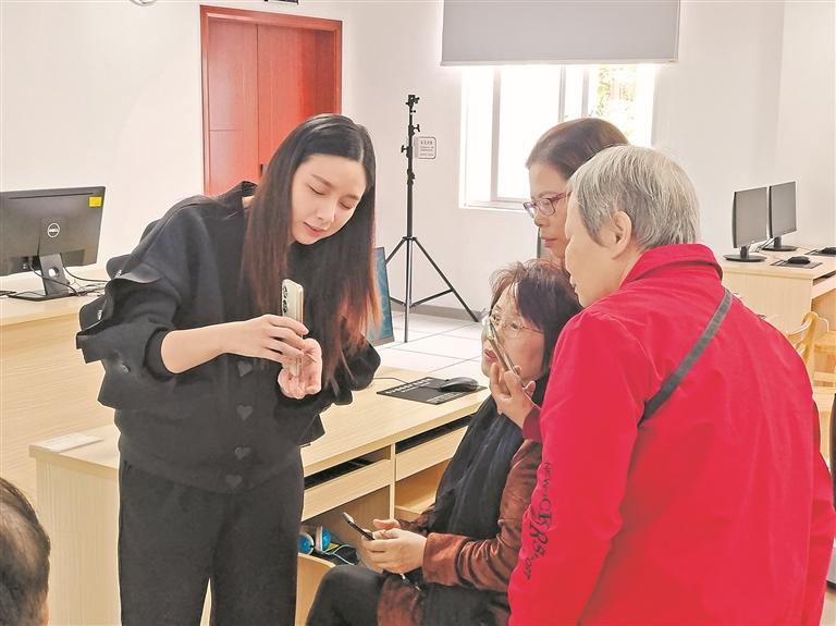 而郑丽贞的老年学员们总是乐于与她分享生活中的点点滴滴,就像是老友一般。同样,郑丽贞也给了学员们足够的理解与帮助,她犹如百科全书一样的存在,深受老年学生的欢迎。“郑老师,如何将微信名片转给我的好友?”“郑老师,截图怎么操作?”“郑老师,怎么面对面建群?”……不管是课上课下,郑丽贞的手机总会收到学生们各种各样的问题。“现如今,子女因为忙碌容易忽视老年人的需求。老年人可能也会放不下面子不愿寻求孩子的帮助。对我而言,能够替代他们的孩子被老年人需要的感觉也挺不错的,但作为子女,大家还是要更多关心这个群体。”