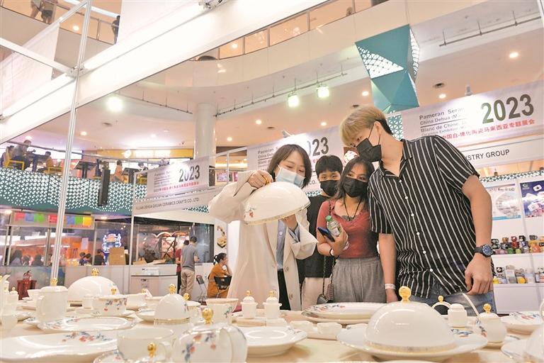 今年年初,德化组织陶瓷企业赴马来西亚办展,展出的白瓷受当地人民欢迎。(吴有森 摄)