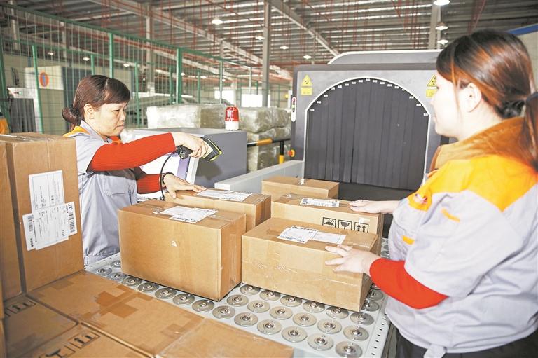 陆地港跨境服务口岸成为全国业务量前列的国际快件监管现场。(陈晓东 摄)