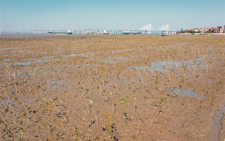 近日,蚶江镇林銮渡生态检修道海陆交汇的潮间带上,已栽植一株株秋茄、白骨壤和桐花树苗,也就是大家熟知的“红树林”。据悉,相关区域此前已完成互花米草除治工作,此次共人工补植“红树林”142.43亩,助力石狮修复海岸生态系统,打造滨海湿地新景。 (康清辉 颜华杰 摄)