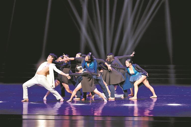 在欣赏完韩国、日本活力四射的现代舞表演后,来自泉州歌舞剧院的演员们带来舞蹈《人偶情未了》。该作品呈现一个线偶老艺人和一群以人演偶的女舞者,在虚实相生的空间中交织跳动,最终融为命运共生的一体。演出一结束,现场便响起了热烈的掌声。