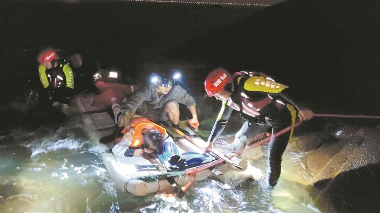 因该岛周围暗礁较多,船只无法靠近营救。消防员与海上救援队队员穿戴好个人防护装备,将漂浮绳绑在救生筏上,再由海上救援队队员利用救生筏涉水前往小岛进行营救,两名熟悉水性的消防员在岸上配合,做好后方保障。