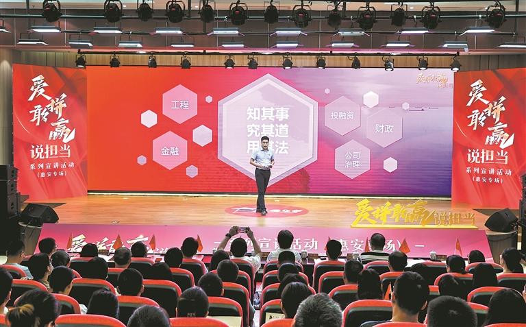 (上接第一版) 2020年“‘泉’民开讲”宣讲项目正式实施,在“‘泉’民开讲”示范带动下,各县(市、区)立足本地工作实际,培育“一县一品”基层理论宣讲特色品牌,在全市构建全域化立体式大宣讲工作格局。洛江区打造“洛地有声”品牌、鲤城区探索“福鲤桐声”宣讲、南安市推出“理响武荣”特色理论宣讲、惠安县的“惠明理”新时代文明实践宣讲团……通过创新“一县一品”基层特色理论宣讲,让更多的基层群众成为宣讲主体,深入开展对象化、分众化、互动化宣讲36000多场次,受众人群1500余万人次,进一步讲好泉州故事、传播好泉州声音,推动基层理论宣讲赋能泉州高质量发展。