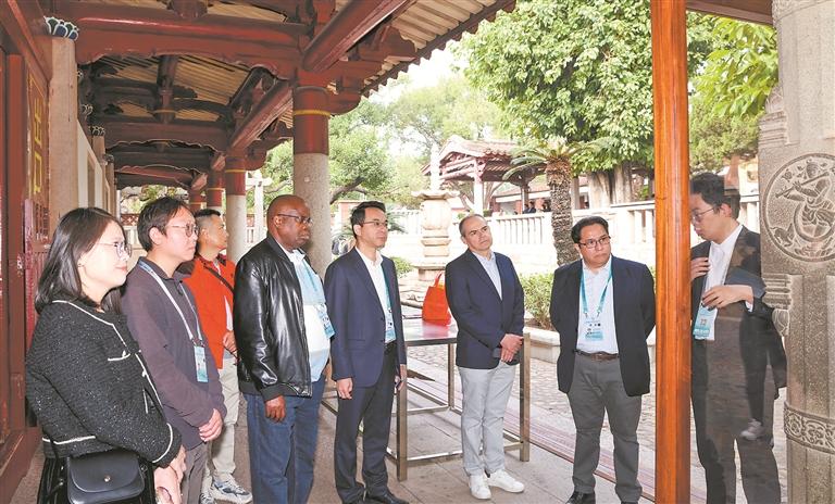 在泉州海交馆,代表团全方位了解泉州辉煌的海外交通贸易史。市舶司出土的瓦当砖块、被称为“刺桐十字架”的元基督教四翼天使石刻……琳琅满目的文物展品,令外宾们应接不暇。“能把一段历史保护得这么完好,打造出这么好的一个博物馆,泉州真的很厉害!”大卫·加马拉再次点赞了泉州的历史文化保护工作。