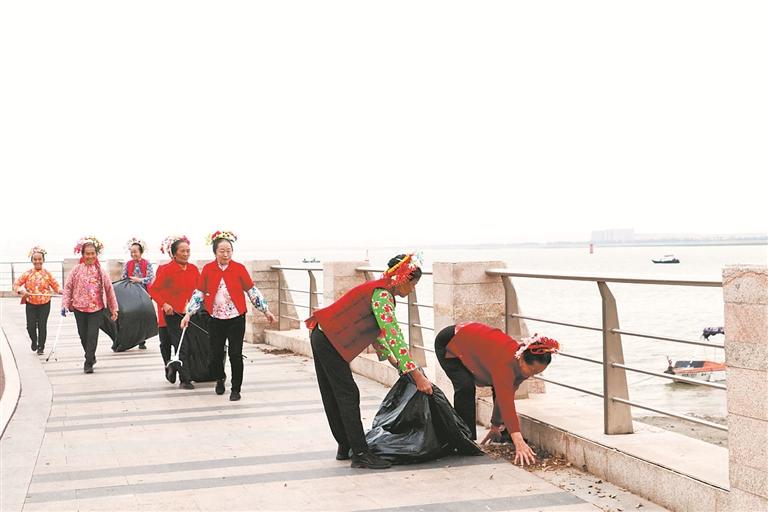 日前,簪花巾帼志愿者巡河护河活动在晋江西溪东海蟳埔段举行。东海街道的志愿者们头戴簪花,身穿红马甲,相互配合、分工协作,手拿垃圾钳、垃圾袋等工具对河岸周围开展巡查,沿着河边清理纸屑、塑料袋、落叶等垃圾杂物。同时在晋江河道边向渔民、游客等发放河长制宣传单,以实际行动保护河流,将簪花之美和河湖之美结合,营造全民爱河、管河、护河的浓厚氛围。(陈懿 摄)