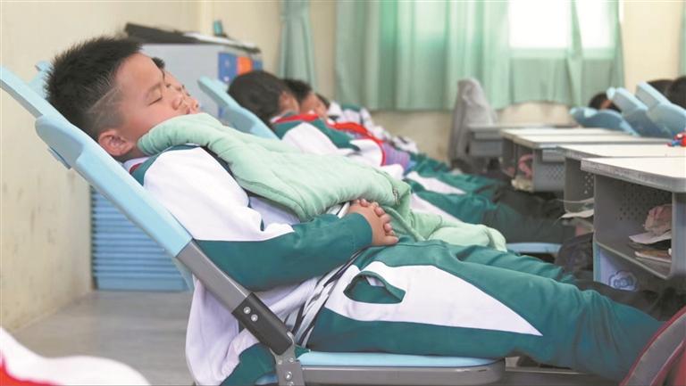 记者走访我市多所小学发现,不少学校更换了新式午休躺椅,让学生实现从趴着睡变躺着睡,在校园里也能享受安心舒适的午休时光。