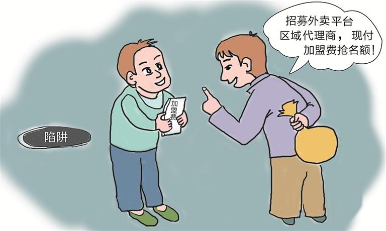 陈先生在泉州市区开水产店,此前,他接到自称是网络技术公司销售人员的电话,邀请他到丰泽区一家酒店开互联网会议。在会议现场,销售人员声称他们招募外卖平台区域代理商。区域代理商可以去找商家进驻外卖平台,从中获得提成。但代理商数量有限,需要现场付加盟费抢名额。在销售人员的宣讲诱导下,陈先生花了39800元抢下了代理权。