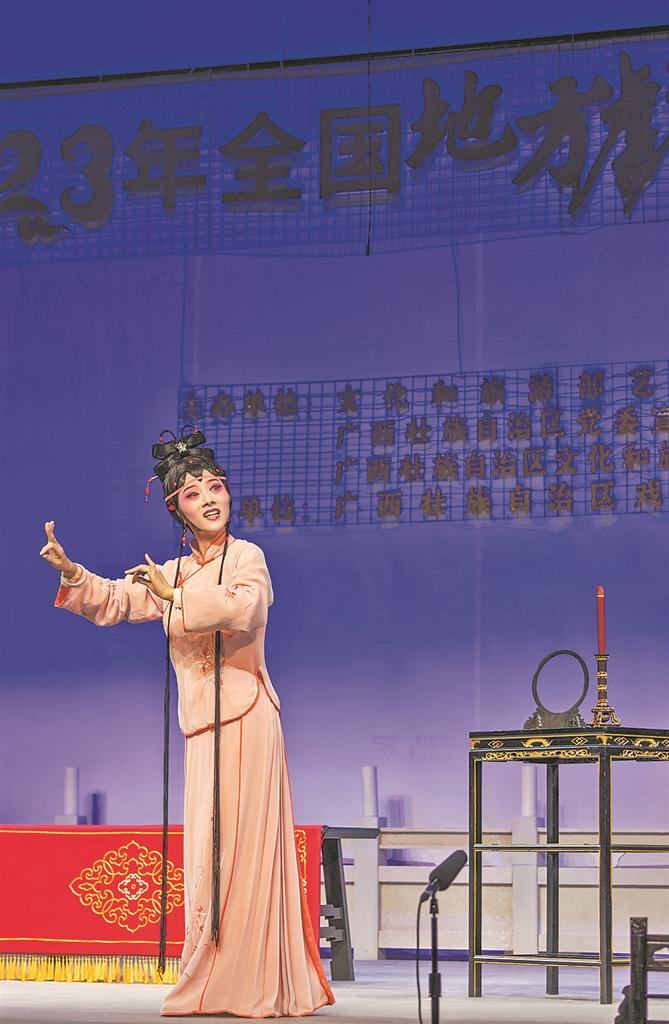 本报讯 (记者陈智勇 通讯员谢子丑 文/图)日前,梨园戏传统折子戏《陈三·大闷》赴广西南宁参加2023年文旅部全国地方戏精粹展演。这是梨园戏第一次走进山水秀丽的八桂大地,来自泉州的宋元南戏活化石,让广西的观众朋友惊奇于压脚鼓的丝竹古韵,陶然于“一句曲一步科”的缓歌曼舞。“一条长椅”的典雅极简的高度程式化表演,该节目也获得了专家评委们的掌声。