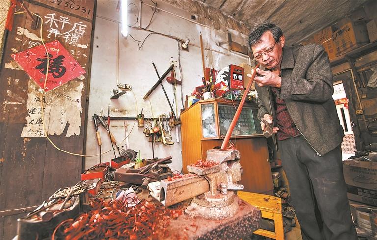 老街之“老”,在于其承载的历史与文化,也在于至今依然活跃着的老手艺。在晋江东石镇嘉应庙大门前的老街上,就有一间这样的小店。
