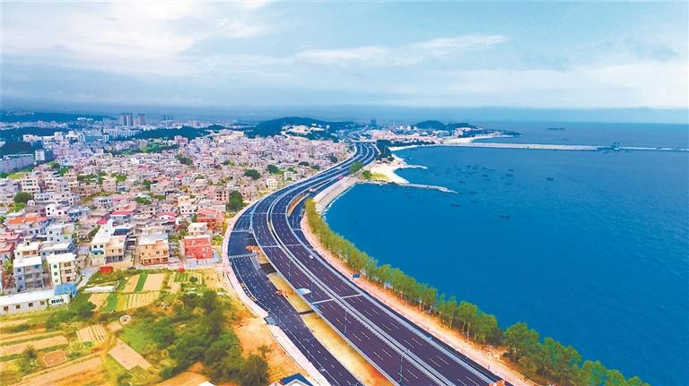 海湾大道(海江大道—16#码头)工程线路全长11.343公里,全线桥梁8座,总长约3.97公里;U型槽及框架桥长1.66公里。项目合同造价为35.57亿元,主要建设内容包括道路、桥梁、U型槽及框架桥等13个子单位工程,为省、市、区三级重点建设工程,是滨海地区典型的大型市政综合工程,集交通通行、战备民生、经济建设、防洪防潮、旅游观光等功能于一体,是国内一流的滨海岸线。