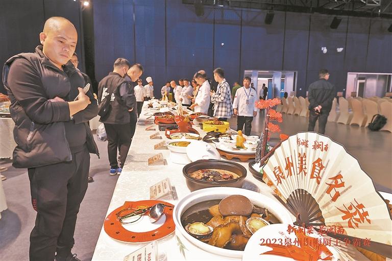 本报讯 (记者刘倩)刀光勺影间比技艺,杯盘碗碟中亮绝活。昨日,一场山海融合的美食盛宴在位于泉州市金花人民广场的国潮泉州创新发布中心上演。历时3个多月,2023泉州山海厨王争霸赛(2023年度餐饮行业职业技能竞赛)暨美食名店、名厨、名菜、名小吃系列推选活动正式落下帷幕,200多个(位)名厨、名菜、名小吃进行现场烹饪、集中展示和专业比拼,众多市民朋友参与现场品鉴,感受舌尖上的盛宴。