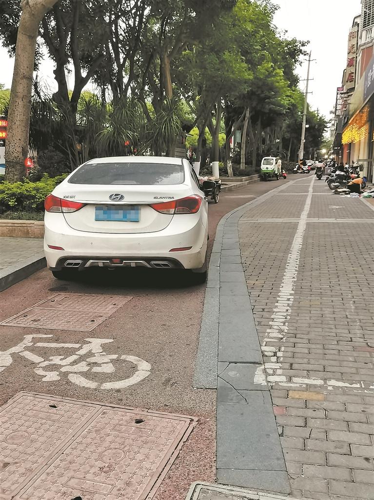 ?泉州中心市区新华北路897附近的非机动车道,经常被小车和电动车挤占。(网友“吵吵” 摄)