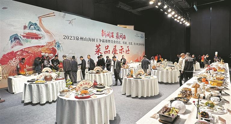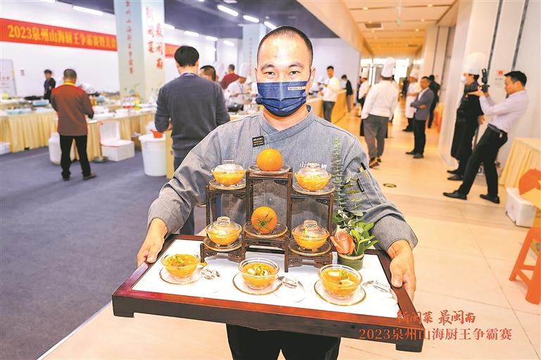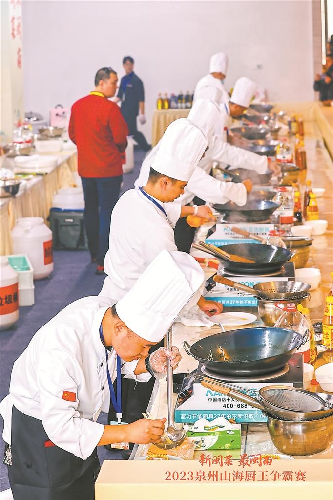 一筷尝山海珍馐,一碗盛闽南风情。12月15日上午,在国潮泉州创新发布中心(金花人民广场),2023泉州山海厨王争霸赛(2023年度餐饮行业职业技能竞赛)暨美食名店、名厨、名菜、名小吃系列推选活动总决赛拉开帷幕。现场,美食名厨、名菜、名小吃三大项目赛事轮番上阵,数百位厨师、上百家餐饮单位参与,由市民读者组成的近百位“美食品鉴官”团队前来品尝美食。在省市各级领导及美食界嘉宾的共同见证下,当晚,金花人民广场举行了盛大而隆重的美食界颁奖典礼,至此,2023泉州“新闽菜·最闽南”系列推选活动圆满落幕。□本社记者 王宇静/文 庄丽祥/图
