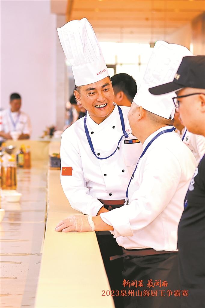 “感谢政府提供了这样一个平台,让我们能够一展身手,切磋交流,这本身就是对餐饮业最大的肯定与鼓励。”来自石狮的胡朝荣,以精湛的技艺在厨王争霸赛中拔得头筹,荣获泉州十大山海厨星的第一名。赛后在接受记者采访时,他非常高兴地说,自己从事餐饮行业已近30年时间,主攻闽南菜系,今年的“新闽菜·最闽南”比赛主题就很对自己胃口,“能同台跟闽南菜厨师们一较高下,既能检验自己的水平,也可以从中学到很多东西,尤其是年轻一代的厨师,都很有想法、创意十足!”