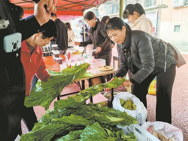 车辆到达丰泽区泉秀街道泉淮社区百草图书馆前的社造广场时,泉淮社区居委会工作人员早已在此等候,帮忙卸车布展。经过近半个小时的布置,来自山区的蔬菜、土猪肉、农副产品、炊事用品等整齐地摆放在广场上,引来居民的围观选购。现场还搭起柴火灶,烧了一大锅芥菜饭供市民免费品尝。“那热腾腾的饭菜香气在风雨中暖胃又暖心。”昨日,说起这一幕,居民吴先生一脸满足,他憧憬着下一次的共建活动。