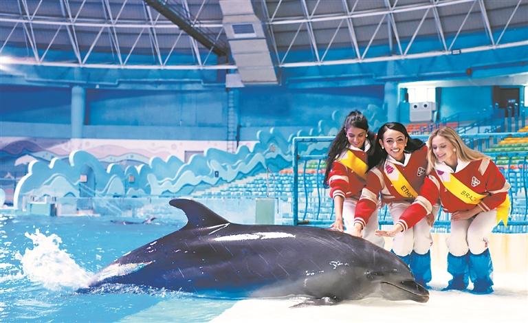 在海豚馆,海豚宝宝跃出水面,佳丽们小心翼翼地走上前,生怕惊扰了这位海里的朋友。海豚宝宝毫不怯场,与佳丽们“零距离”接触,这份掌心传情的奇妙体验,让来自德国的Taya Wolf兴奋不已。她说:“如此近距离见到海豚,甚至能用手触摸,真是一种奇妙的感受。回到德国后,我会把这段奇妙的经历分享给每一位朋友。”