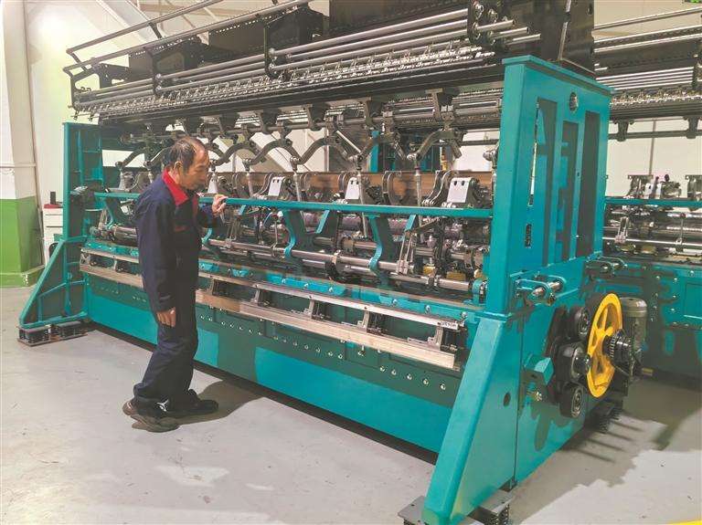 银行加大支持我市中小微企业技术创新力度。图为企业员工在检查纺织机械设备。