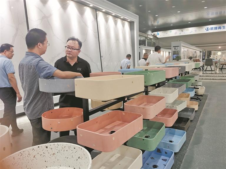 泉州拥有全国闻名的千亿建材集群,同样拥有不断壮大的资源再生固废综合利用产业群体,他们通过绿色智造持续优化建材上下游生态。盈晟新型墙体材料有限公司的多孔砖全自动化生产线每天能生产40万块标准砖,标准砖的原材料便是建材等固废品。晟麟石粉综合利用有限公司每年可就近处理消化各类石材石粉、边角料、废弃石等“废渣”约50万吨。“世界石都”水头“人造石”产业也正在悄然成长。深耕该领域十余载的鹏翔实业充分利用矿山碎石、边角料、玻璃颗粒等材料,打造出精美的人造石系列。近年来,东星石材等原本石材生产领域的“大咖”也纷纷上马资源再生项目,进一步消化了当地的固废。