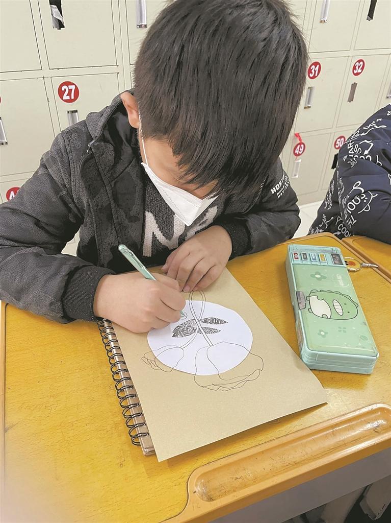 学生们以手绘方式创作中草药图画(鲤城区第三实验小学 供图)