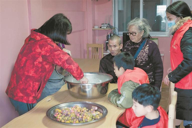 “搓圆”活动结束后,志愿者还和老人拉家常、聊趣事,欢声笑语萦绕在敬老院里。通过这次志愿者行动,老人感受到来自社会的温暖和关爱,提前度过一个温暖幸福的“冬节”。
