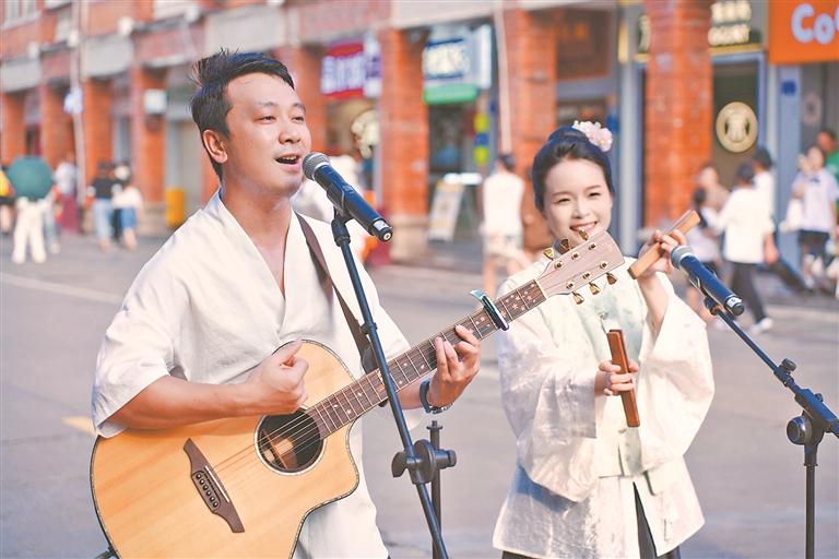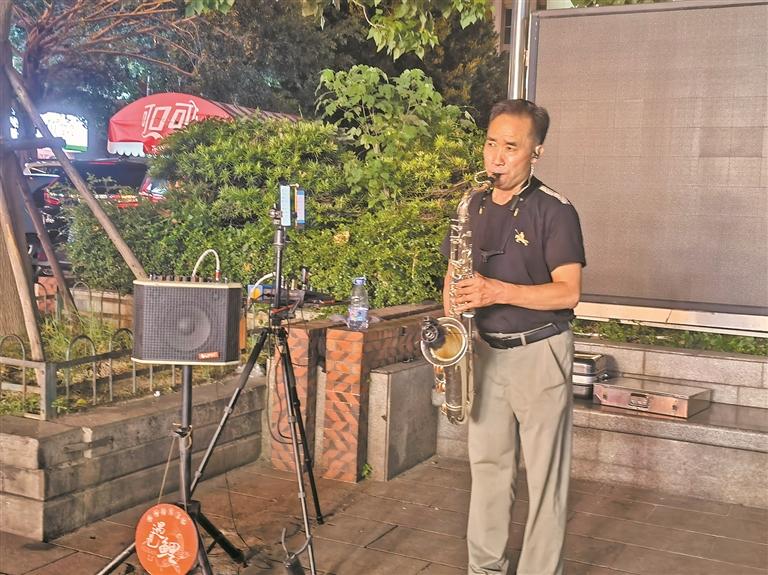 同样在街头分享音乐的,还有贵州人老唐。过去20多年里,他背着乐器走过了很多城市,因为热爱音乐,每天晚上的街头演出已经成为他生活的一部分,也成了支撑他生活的一部分。八年前,他偶然来到泉州,感受到干净整洁的街道、热情好客的市民,也结识了不少志同道合的朋友。泉州的包容和温暖,让他切实感受到了归属感,他决定留下来。如今,作为鲤城持证上岗的街头艺人之一,夜幕降临时,总能在西街见到他吹响手中金灿灿的萨克斯,用美妙的乐曲声传递着他的深情祝福。(魏晓芳 郭芳蓉)