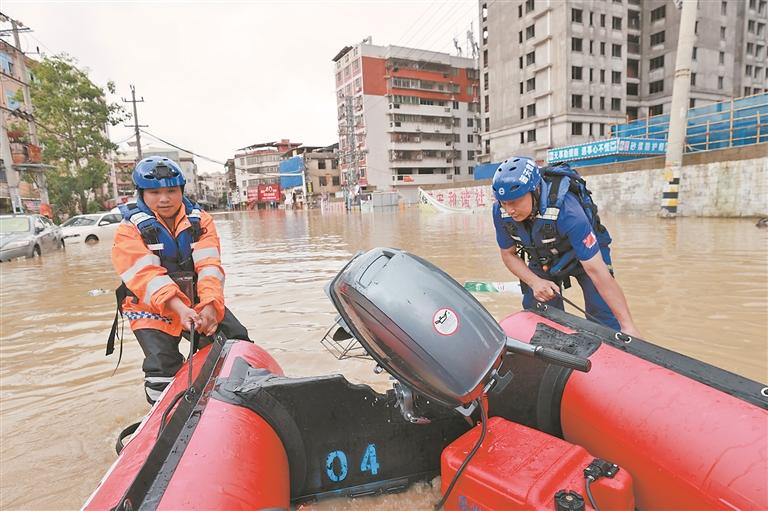 今年7月28日,超强台风“杜苏芮”正面登陆泉州。次日,南安洪濑镇区严重受淹。当日清晨5时许,在鲤城区泉州蓝天救援队队部里,已备勤第4天的陈元生和队友一起接到了出发支援洪濑的指令。一路都是洪水和倒伏的树木,他们又是清障又是绕道,用了近5个小时。当天9时许,一到达洪濑,陈元生和队友就投入一线救援工作。如此凑巧,当日14时40分,本报记者随蓝天救援队赴灾区采访,坐上的就是陈元生所在的橡皮艇,无意间记录下他生前最后一段救援时光。