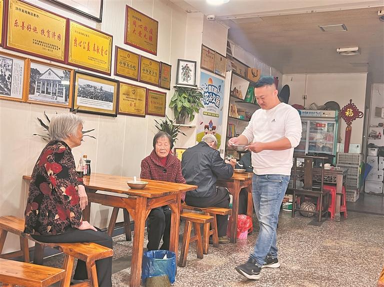 因为自己“淋过雨”,更想为别人“撑把伞”。2017年,他和妻子开了面线糊店。一次,他作为志愿者与洪南社区干部走访慰问困难家庭,看到有的老人生活窘迫,心里很难受。回想自己曾受人帮助,现在有能力了,也应为老人做点事,他便决定每月5日、15日、25日为洪南社区的困难户提供免费午餐。孤寡老人、低保户、残疾人等困难群众仅需凭社区发的“免费餐券”即可到店免费用餐3次。2021年,免费用餐人群增加了洪东、洪西、洪北社区,同时不限日期、不限午餐。