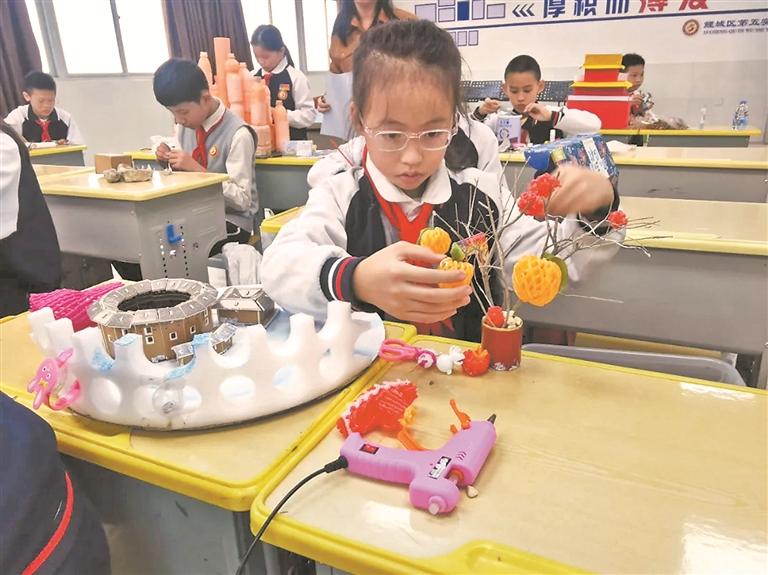 本报讯 (记者王丽虹 通讯员蔡玲玲 文/图)为引导学生从小树立勤俭节约的良好品质,提高生活垃圾分类意识,近日,鲤城区第五实验小学举办“绿色环保 巧手扮家”环保手工创意制作比赛,同学们充分利用家中的废旧物品,发挥奇思妙想,用一双双巧手使旧物换新颜。