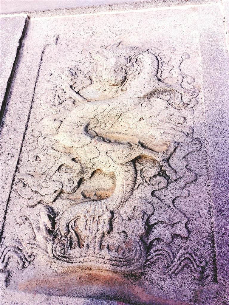大成殿前有月台,又名须弥座,其为条石垫高的平台,与一块“丹陛石”相连。此“丹陛石”为古物,未加移动,上有3爪龙雕,属元代风格。“丹陛石”又称“陛阶石”,为古代宫殿门前台阶中间镶嵌的长方形石头,一般设于宫殿前两条主路中间,常为一整块石头。南安文庙的“丹陛石”便是如此。