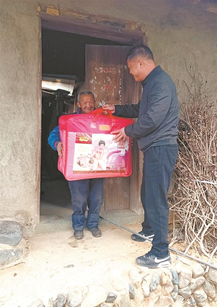 本报讯 (记者魏晓芳 通讯员李秋燕 文/图)“最近身体怎么样?天气越来越冷了,给你们送来一床棉被,如果有遇到什么困难要及时跟我们说……”12月20日,安溪龙涓乡驻村工作组和村干部兵分多路,为辖区100名困难群众送去了御寒棉被和冬日慰问。