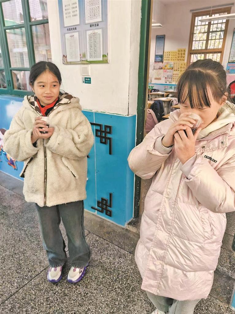 昨日,南安市蓬华镇最低气温达到-0.7℃。在蓬华中心小学华美校区,学生们在教室门口排队领姜茶喝,有说有笑。“我们从天气预报上看到,这几天气温降得很快,今天又是冬至,我们就想帮助孩子们防冻防寒。”校区负责人郭文平介绍,他们专门安排老师一大早为学生们准备姜茶。“希望孩子们喝点姜茶,暖暖身子,更好地投入学习。”