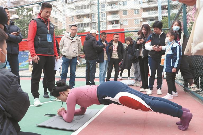 在健身热潮里,充满着人们对美好生活的向往,更澎湃着一股股热血的力量。本次比赛设置两大类项目,其中,个人类项目5个,分别是:平板支撑、个人跳绳、飞镖、中国象棋、九宫格射门;团体类项目4个,分别为:团体跳绳、团体定点投篮、拔河、“眼疾手快”抓棍竞赛等。