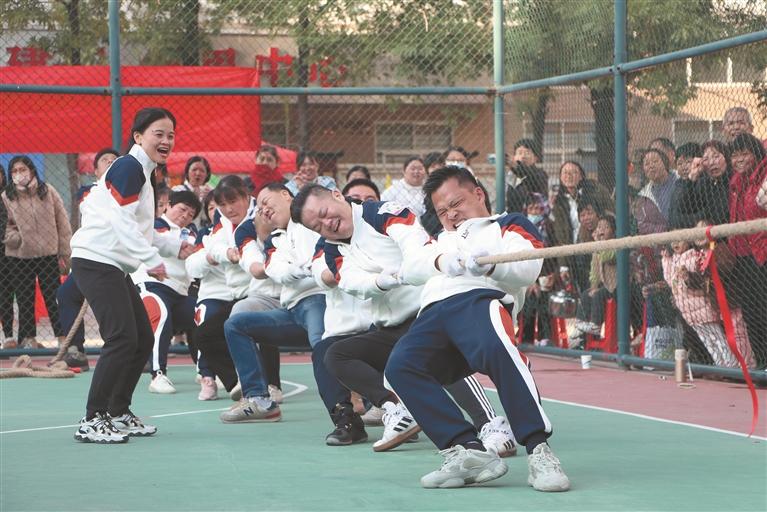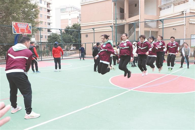 另一边,也正“绳”采飞扬。参加跳绳比赛的队员们五人一组,随着比赛哨声一响,便都鼓足劲头,使出浑身解数奋勇争先,“跳”出活力,不断把比赛的气氛推向高潮。