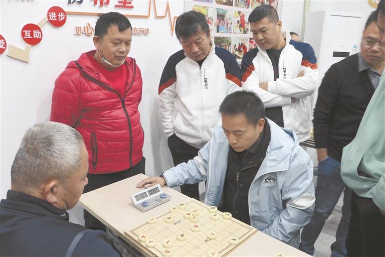 棋逢对手,乐在“棋”中。在象棋比赛现场,棋手们个个全神贯注,在“楚河汉界”里斗智斗勇。只见棋盘之上,兵来卒往、炮飞马跳、布兵摆阵、见招拆招,精彩对决轮番上演,仿佛真的兵戈相撞一般,令在场观看的居民朋友们连连称赞。