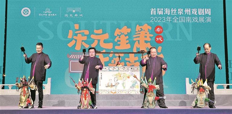 以“南戏”为媒,全国剧种联欢。4月27日—5月3日,首届海丝泉州戏剧周——2023年全国南戏展演在我市成功举行。泉州邀请全国大部分南戏及古老剧种、艺术家齐聚泉州,进行各剧种代表性经典剧目展演和艺术沙龙探讨,是中国戏剧界的一次难得盛宴,也是优秀传统文化革故鼎新的一次新尝试。