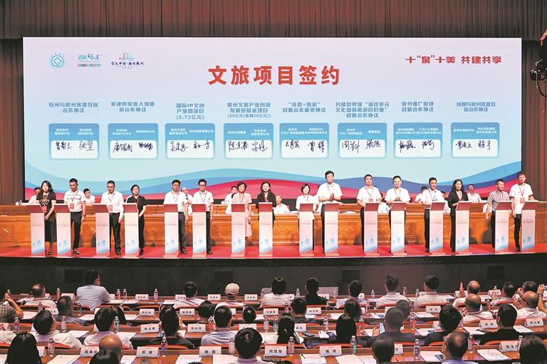 会上,泉州市聘任首批19位文旅经济高质量发展专家, 39个文旅项目集中签约,总金额423.12亿元。24个项目上台签约,包括7个酒店项目、6个旅行社项目、11个文旅基金及其他文旅项目,另有15个项目线下签约,并推出泉州“游”礼·7天畅玩卡以及获评国家级、省级称号的系列文旅产品。