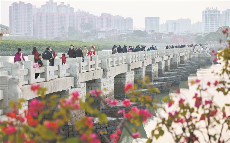 ▲趁着假期,市民游客漫步洛阳桥,体验世遗之美。(彭燕珍 摄)