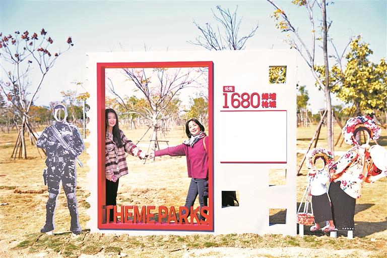 据介绍,枪城双拥公园的“枪城”前身是原泉州鹧鸪口铳台、鹧鸪巡检司遗址,距今近400年历史,曾是泉州古代抗倭的前哨站,是护卫晋江入海口的重要依托。在原有遗址所具有的“尚武抗敌”精神元素基础上,公园融入新时代双拥元素,进一步打造为一座集双拥共建、群众文化、休闲娱乐于一体的双拥主题公园。
