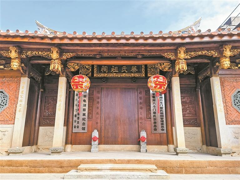 2022年,龟湖蔡氏祖祠重建时,发现祠内乱石堆里有倒伏的古石柱,这才让“龟鉴千秋兰盆会,湖光十里稻香邨”这对“龟湖”藏头楹联再度面世。其中的“兰盆会”还涉及古泉州普度旧俗。