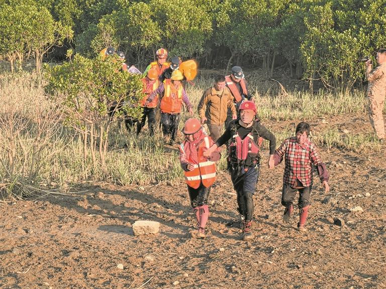 本报讯 (融媒体记者陈明华 通讯员颜思婷 文/图)近日,泉州消防救援支队特勤一站接到警报称,晋江市六原大桥北300米处,有6人被困海边红树林里无法上岸。接警后,泉州市消防救援支队特勤一站救援人员和泉州海警局丰泽工作站工作人员紧急出动,同时从陆路和海上赶往现场救援。